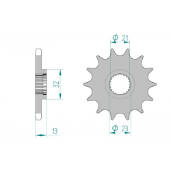 Pignon AFAM type 21311 en acier, pas 428, 15 dents (21311-15).