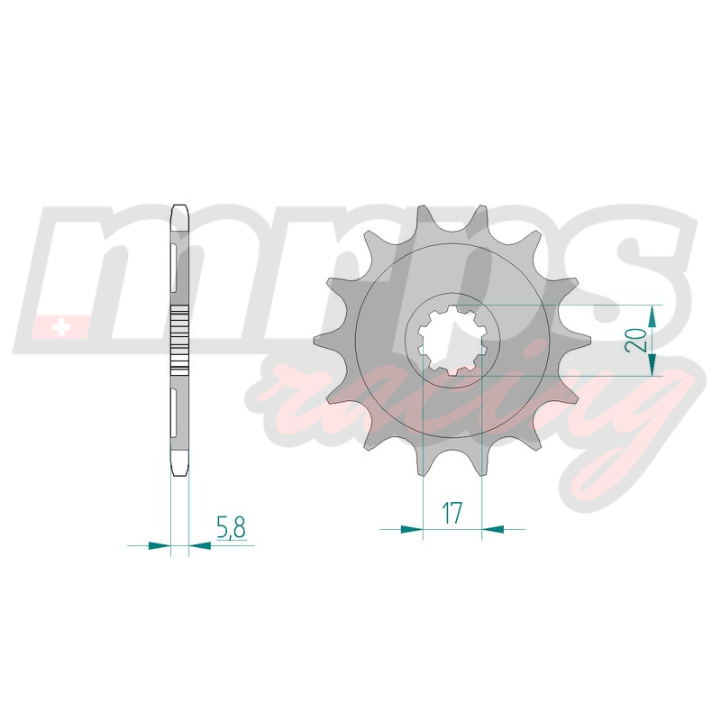 Pignon AFAM type 24304 en acier, pas 520, 14 dents (24304-14).