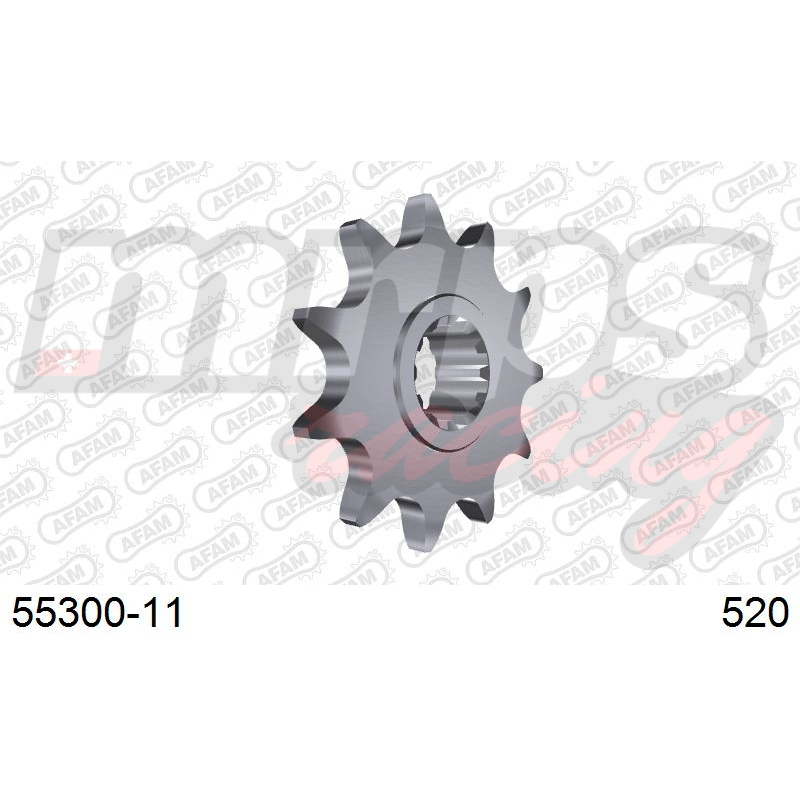 Pignon AFAM type 55300 en acier, pas 520, 11 dents (55300-11).