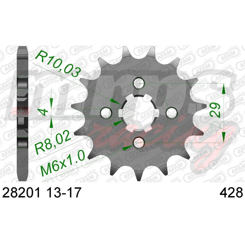 Pignon AFAM type 28201 en acier, pas 428, 14 dents (28201-14).