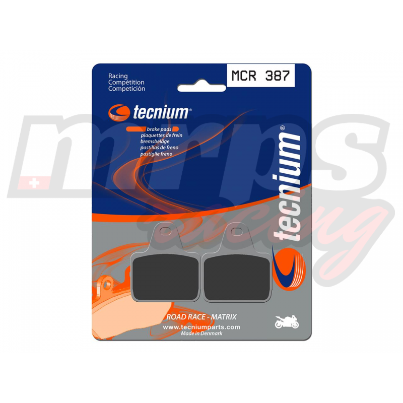 Plaquettes de frein Tecnium MCR 387 type racing endurance (matrix, métal fritté et carbone).