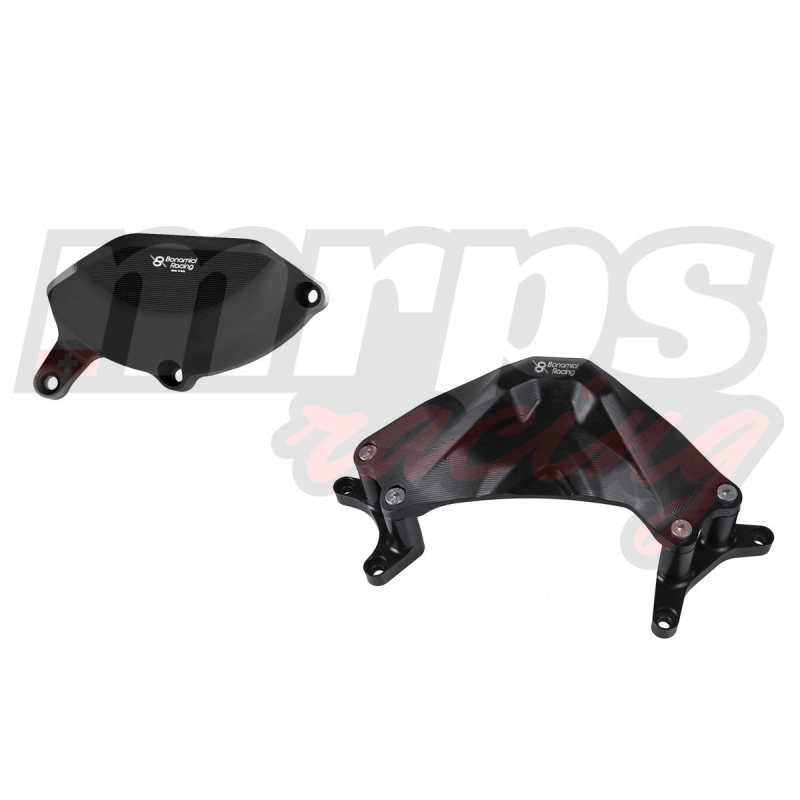 Fabriquées en alliage d'aluminium à haute résistance, usinées dans la masse à l'aide de la technologie CNC et dotées d'une anodisation noire, les protections moteur Bonamici Racing protègent parfaitement en cas de chute ou de glisse.