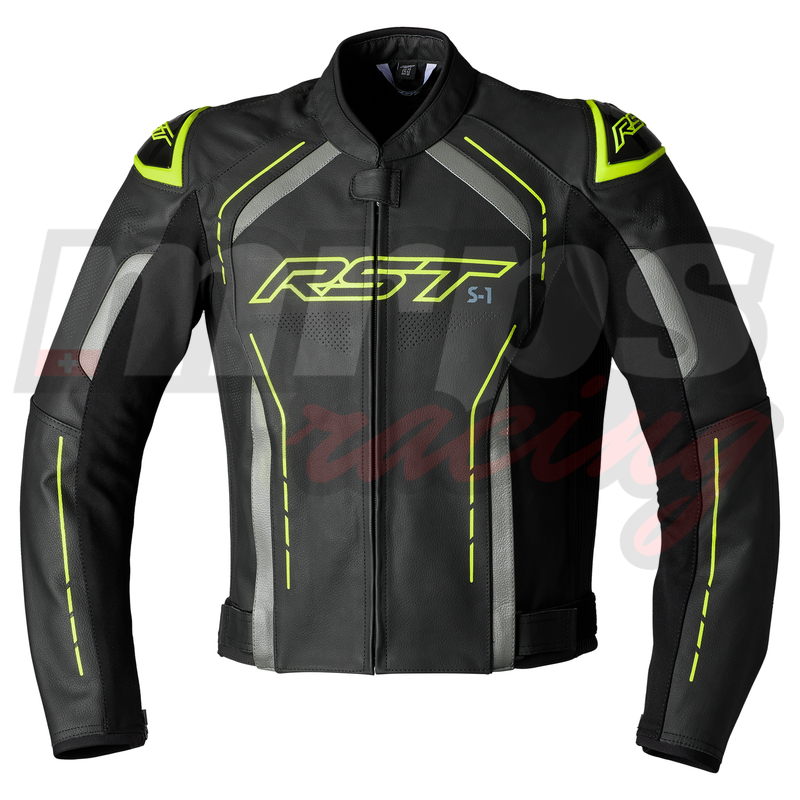 Veste cuir RST S-1 Black/Grey/Neon Yellow (taille 2XL)